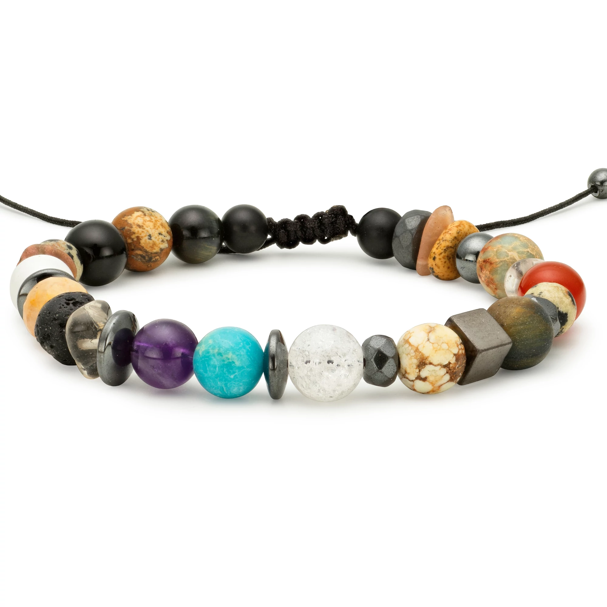 Agate and matte onyx rosegold zircon ball beaded bracelet